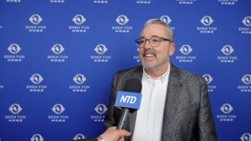 「很令人感動!」台灣大學政治系副教授彭錦鵬表示,神韻無論是背景、服裝、音樂都非常出色。「背景(天幕)做得非常用心,連旗子在飄揚都能看到,很令人感動!」他驚喜地說。