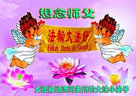 小弟子非常想念師尊!小弟子一定聽師父的話,多學法,不論走到哪裡都要牢記自己是一個大法小弟子,做事先考慮別人,在矛盾中修好自己,不給大法抹黑,同時還要充分利用師父給弟子的神通清除阻擋世人明白真相的邪惡生命,讓更多的世人得救。請師父放心,弟子一定不會讓師父失望的!