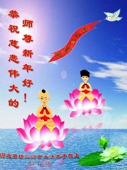 河北省廊坊市一學法組的大法弟子,值此新年來臨之際,恭祝慈悲偉大的師尊新年快樂!叩拜師尊,感謝師尊慈悲救度之恩!