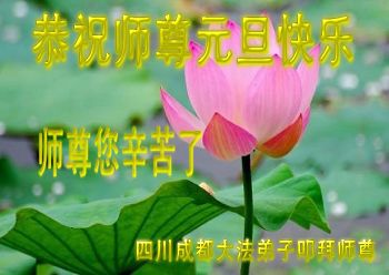 四川成都大法弟子叩拜師尊,祝賀師尊新年快樂!