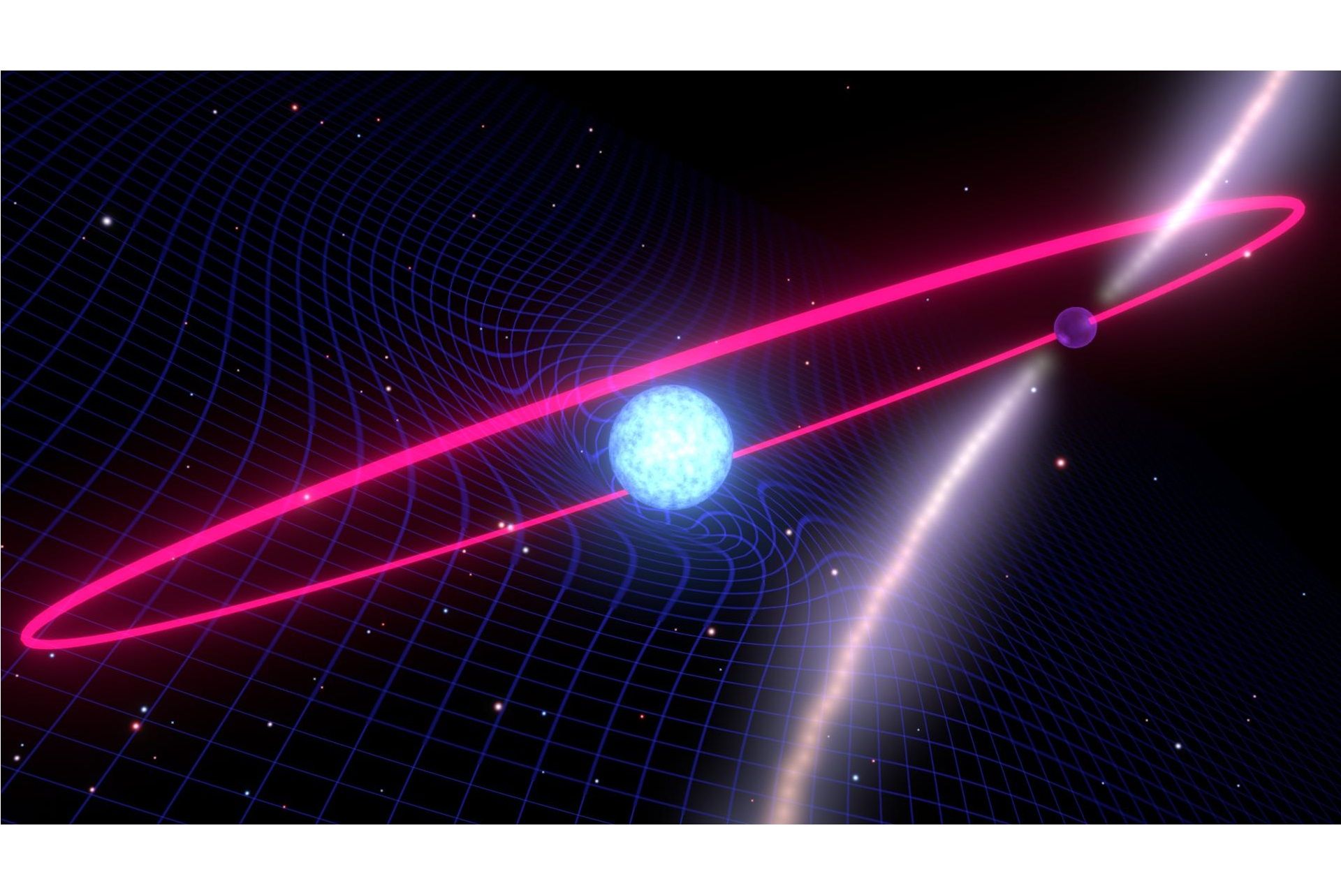 研究顯示,這顆脈衝星不到5小時繞白矮星轉一圈。如果愛因斯坦的時空拖拽理論是正確的,那麼這個系統將是一個很好的證明。