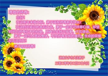師尊您好!我們學法小組全體大法弟子恭祝您新年快樂!師尊辛苦了!