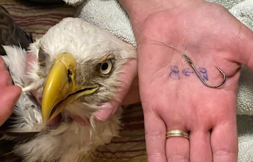 1月8日,帕斯科縣(Pasco County)的兩個孩子在戶外發現一隻白頭鷹被釣魚線纏繞住,進一步發現它的喙竟被魚鉤刺穿了。於是,他們將這隻受傷的白頭鷹緊急送往當地消防局尋求幫助。