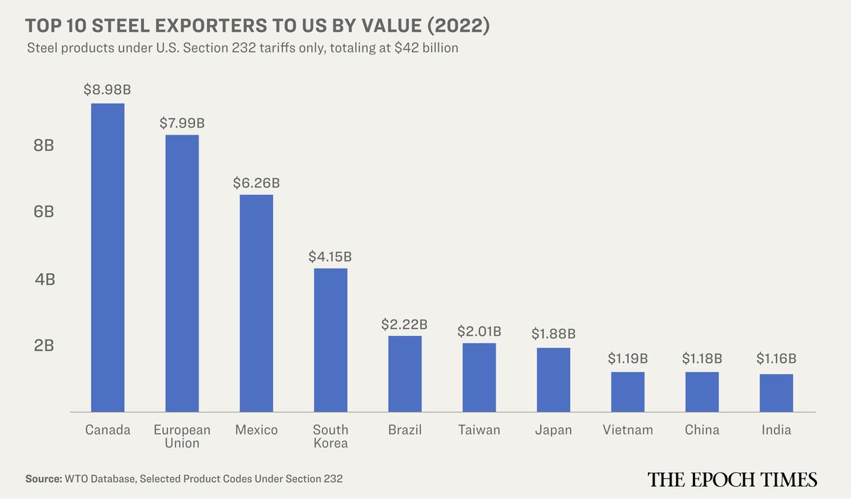 對鋼鐵徵收25%的關稅是為了保護美國國內產業免受中共的衝擊。