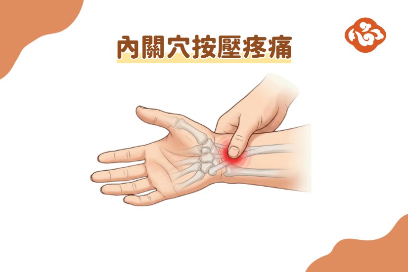 内关穴压痛:手腕内侧距离腕横纹约三指宽处中心的内关穴,若按压时出现酸痛,从中医观点来看,可能与气血运行不顺有关。